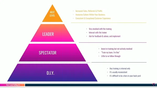 So what we’ve got here is a bit of a model and at the bottom of the model is what we call DIY. So, these are actual customers. DIY can be businesses or individuals, but it’s do-it-yourself. So in reference to training, education and so forth, you’ll see that on the screen here. Any training that these people have is usually internal. What does that mean?